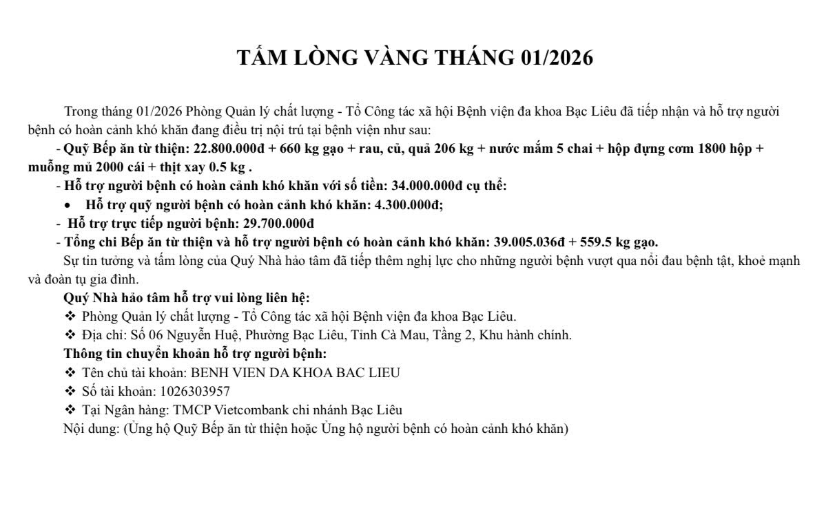 Thứ 4, 11/02/2026 | 09:47 A- A A+ | TẤM LÒNG VÀNG THÁNG 01/2026 TAM_LONG_VANG_THANG_1-2026-da_gop_f845834a23.pdf Đọc bài Lưu TẤM LÒNG VÀNG THÁNG 01/2026 Tập tin đính kèm Tổng số điểm của bài viết là: 0 trong 0 đánh giá Click để đánh giá bài viết